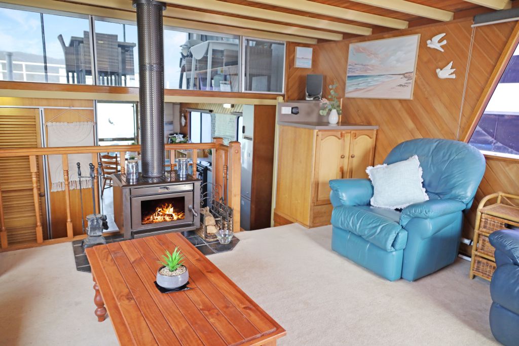 Behind the large tinted windows is a relaxing lounge where you can sit back on the very comfortable furniture and take in the magnificent scenery of Lake Eildon. On the cooler evenings put your feet up and take in the cosy atmosphere of the Warmglo Wood Heater.