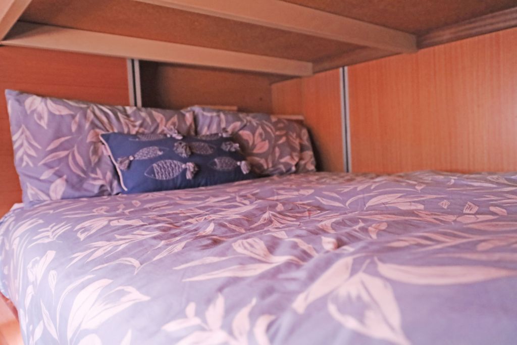 Pistol Knight with its unique layout provides good accommodation for a family with the master bedroom providing a queen ¾ walkaround bed with wardrobe and overhead cupboards. For the family there are two bedrooms with two double beds in each. Great for the kids to spread out and enjoy a good night’s sleep.